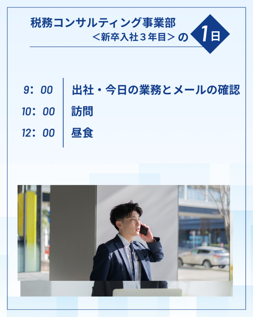 税務コンサルティング事業部社員〈新卒入社3年目〉1日の流れをご紹介